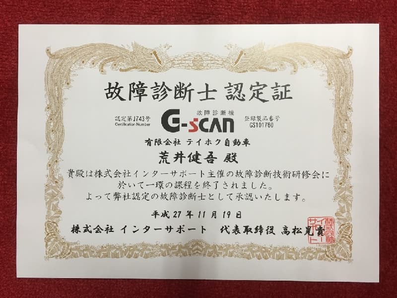 コンピュータ制御が中心になった現代の自動車には欠かせない技術として、高度故障診断士を常駐してお客様のお車を診断いたします。