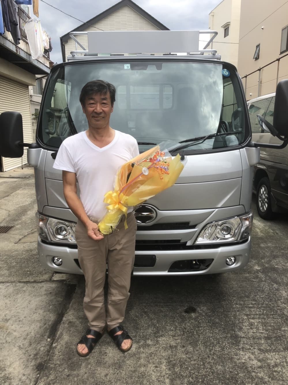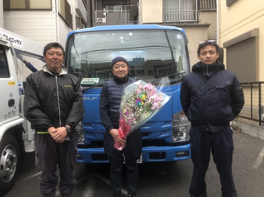 新車三菱キャンターのご購入ありがとうございます。商売繁盛・安全運転をお祈りしております。