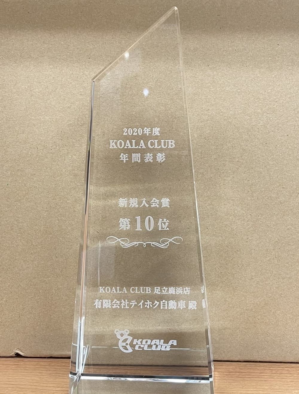 お客様のお陰で、オリコオートコアラクラブの新人賞を頂きました。