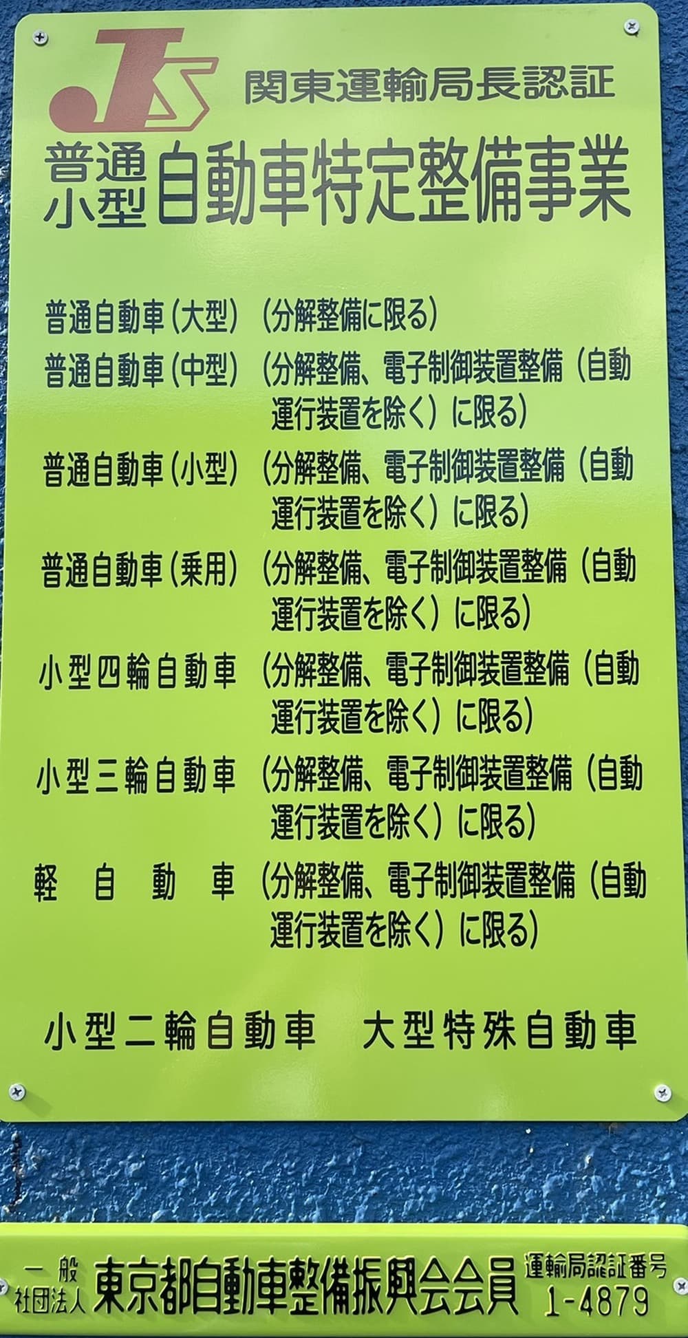 都内でも認証工場での許可は最初の方です。