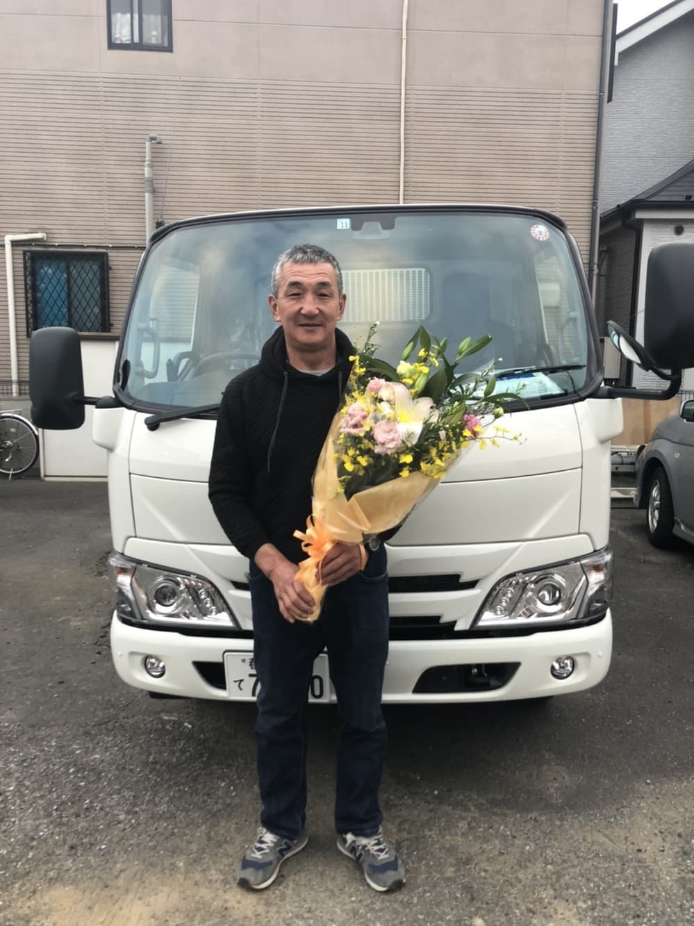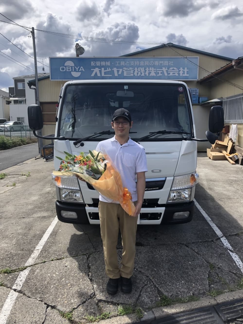 新車三菱キャンターのご購入ありがとうございます。商売繁盛・安全運転をお祈りしております。