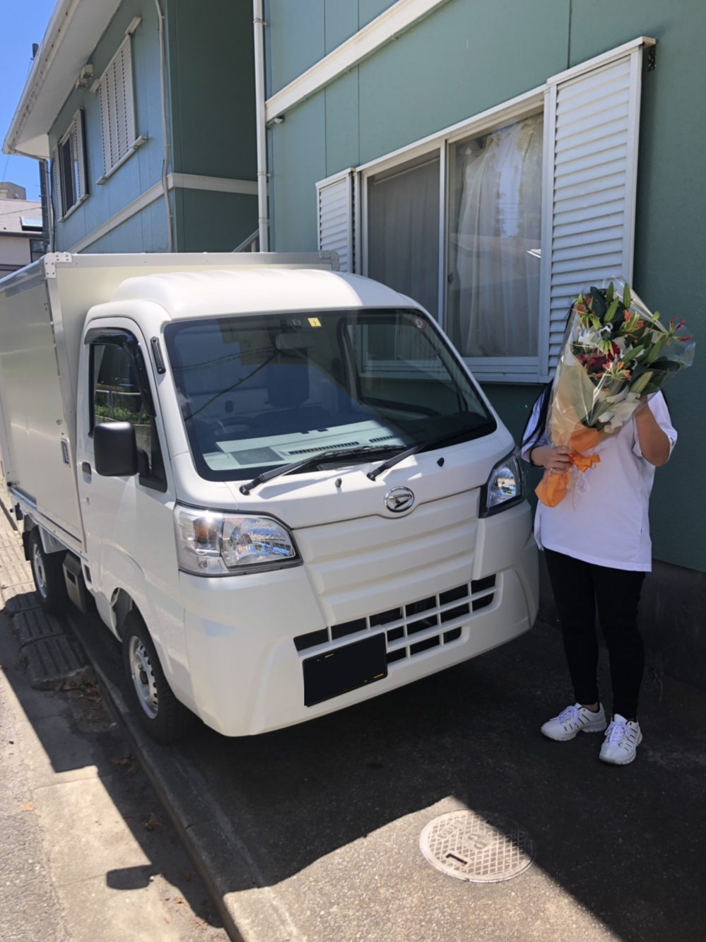 新車ダイハツハイゼットのご購入ありがとうございます。会社のご発展・皆様のご多幸をお祈りしております。安全運転を心がけてください。