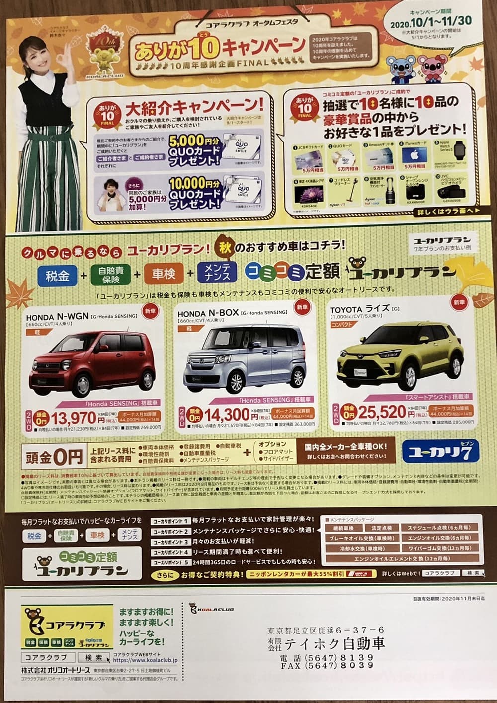 2020年10月1日から2020年11月30日まで、ありが10(とう)キャンペーンを開催しております!